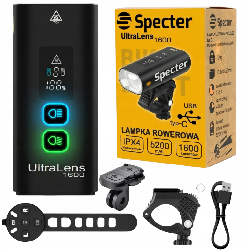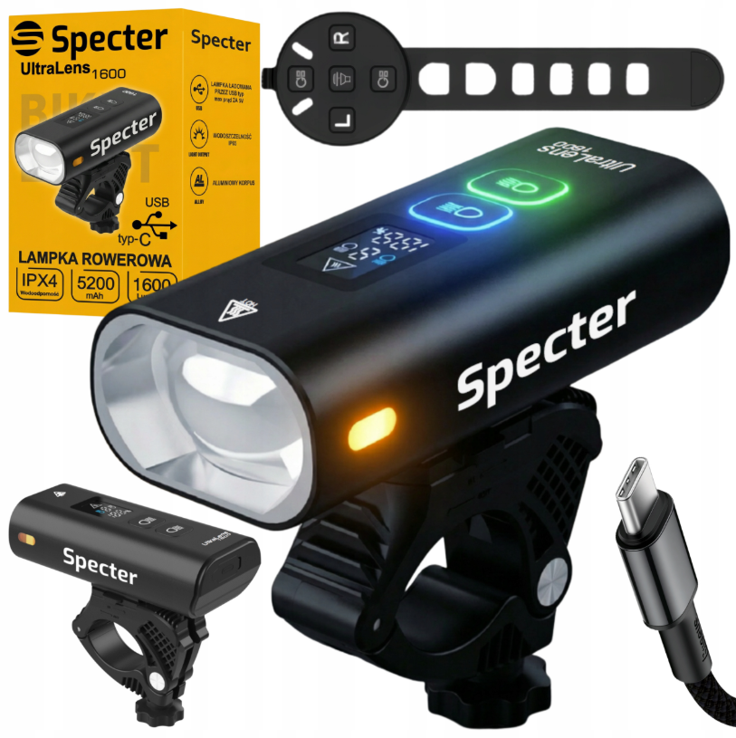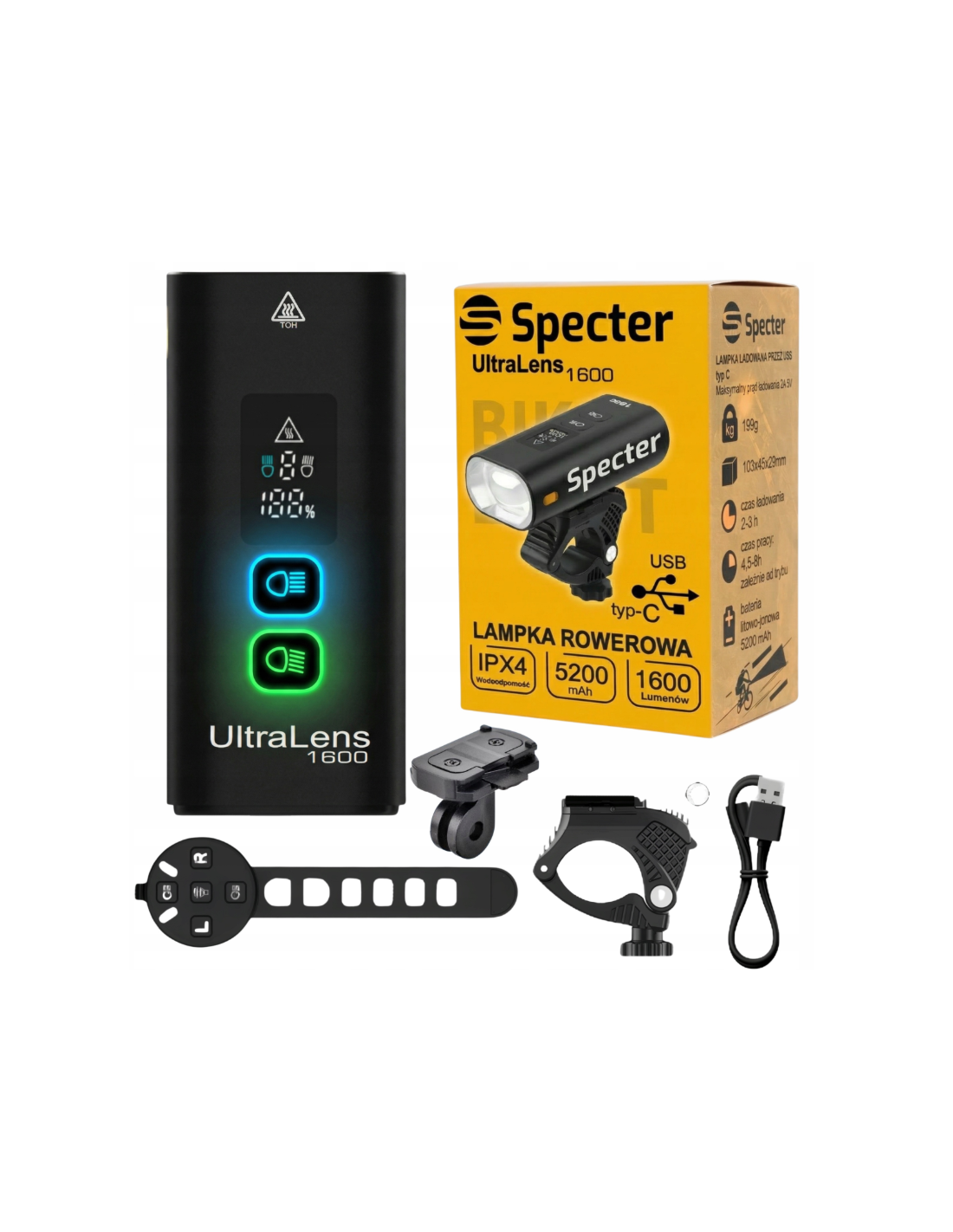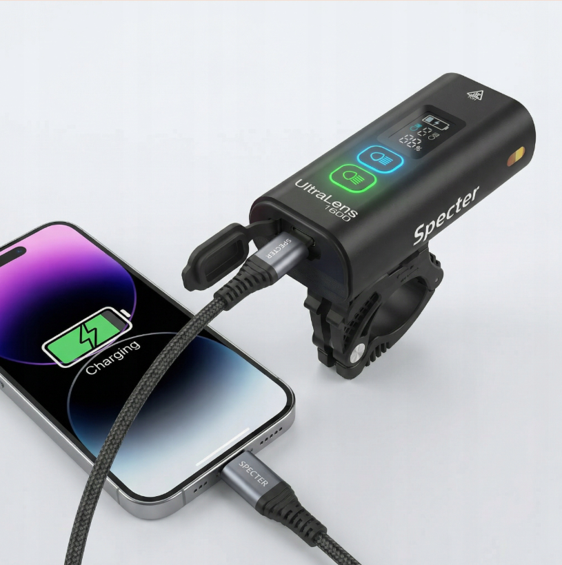 Oświetlenie rowerowe przód Specter Forte1200 lm USB ŚWIATŁA DROGOWE MIJANIA
