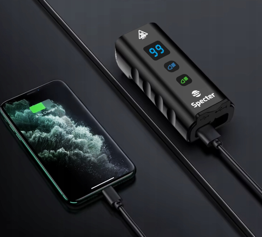 - wyświetlacz pokazujący procentowanie naładowanie baterii